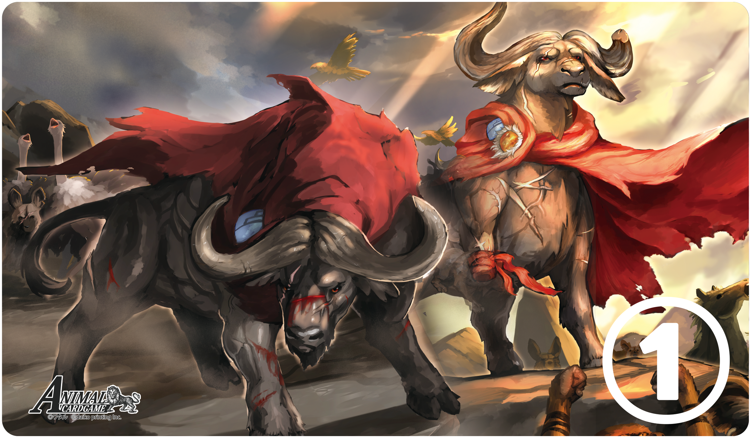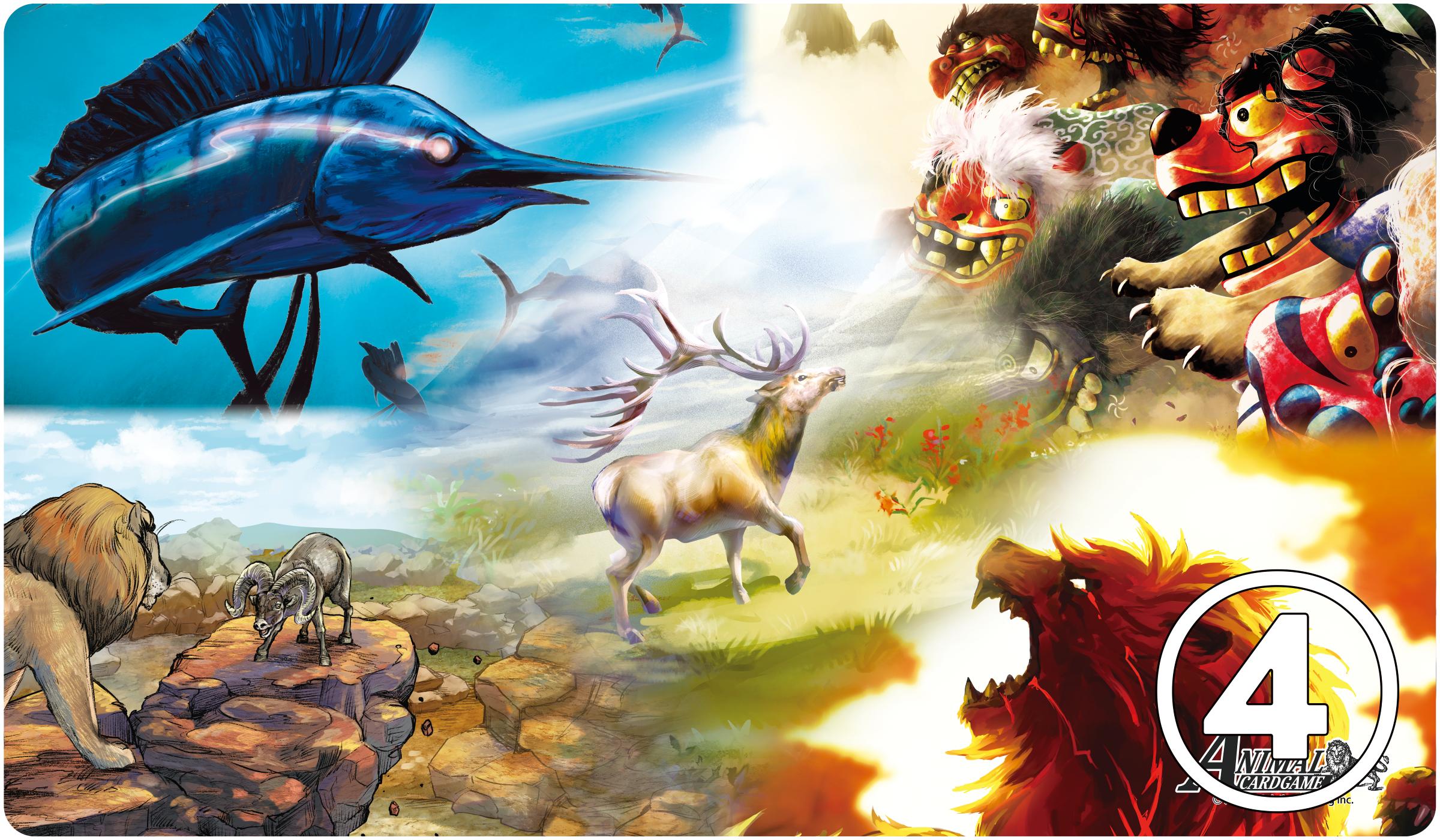 アニマルカードゲームに登場するカードのイラストを使用したアニマルカードゲームの公式プレイマット。