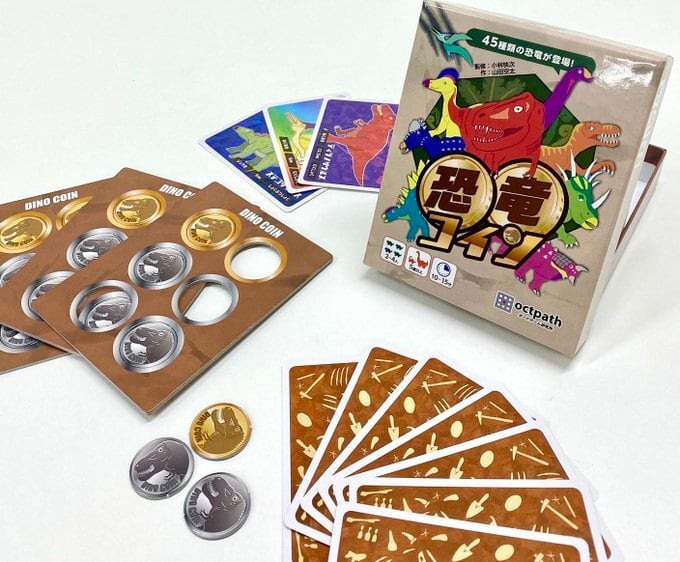 カードと恐竜コインをたくさん集めた人がゲームの勝者だ!
